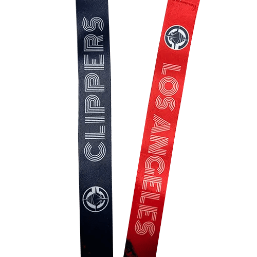 Solid color neckband with a one-color print. Double-sided design included with a standard keyring and J-hook attachment.